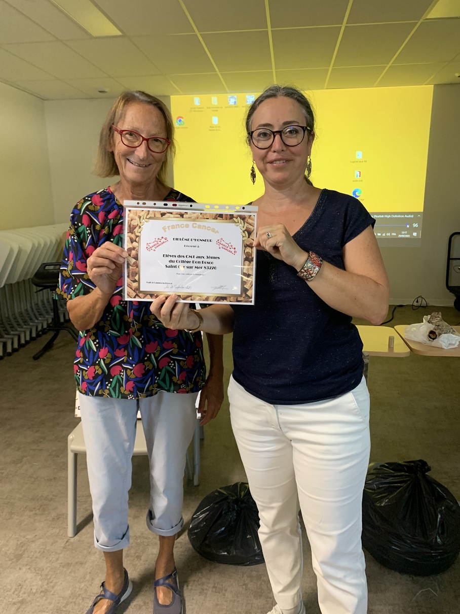 Mme Roussel ( présidente de l'antenne Toulonnaise ) et Mme Campocasso ( vice présidente de l'antenne marseillaise) remercient l'implication de tout l'établissement. Nous avons collecté 852 livres cette année ( un record) qui serviront pour leurs différentes actions auprès des enfants et des personnes âgées.