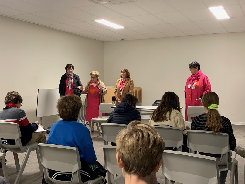 De plus 4 bénévoles de l'association les Blouses Roses ont également rencontré les éco-délégués . Elles ont expliqué leurs actions dans les hôpitaux , auprès des personnes âgées dans les EHPAD ou auprès des apprentis d'Auteuil.